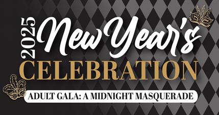 Join us for our Masquerade Gala Celebration featuring a cash bar, all-star gourmet dinner, entertainment, dancing, champagne toast, soup buffet at midnight, breakfast buffet in the morning, and so much more! Masks included.
